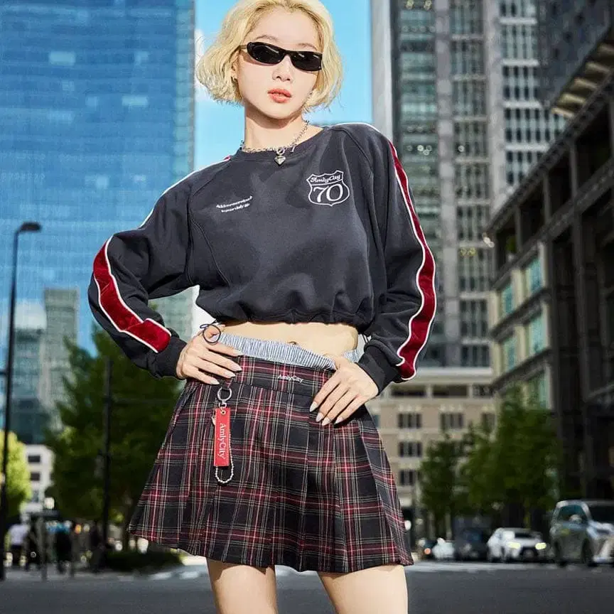 AmlyCity 사이드 라인 숏 맨투맨 네이비