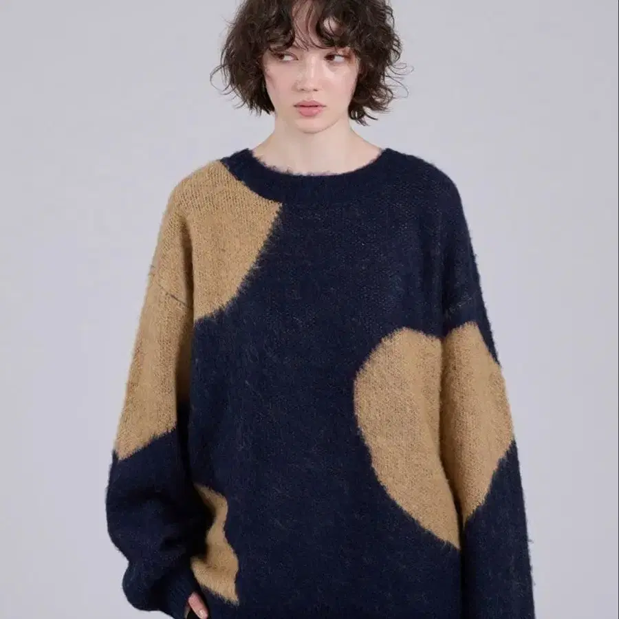 ONCILY (온셰리) 하트믹스 샤기 니트 네이비
