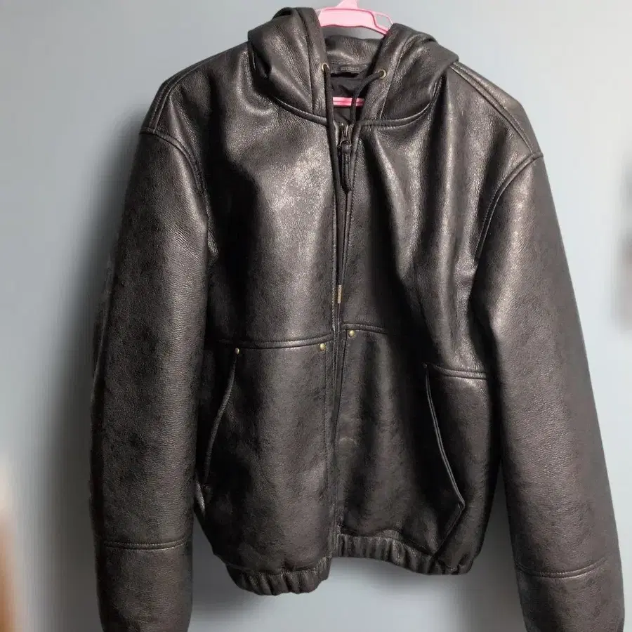 ZARA 후드 부착 블랙 가죽풍 자켓 M