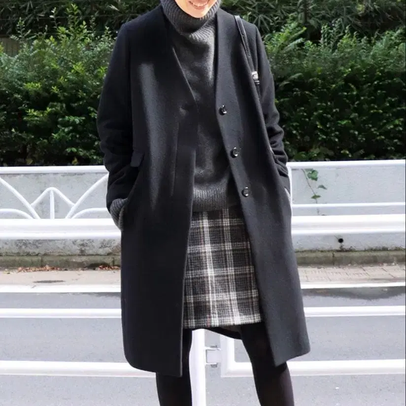 SLOBE IENA 블랙 노카라 울 코트 사이즈 38