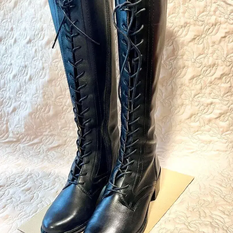 키다리 아저씨 레이스업 롱 부츠 블랙 23.0cm