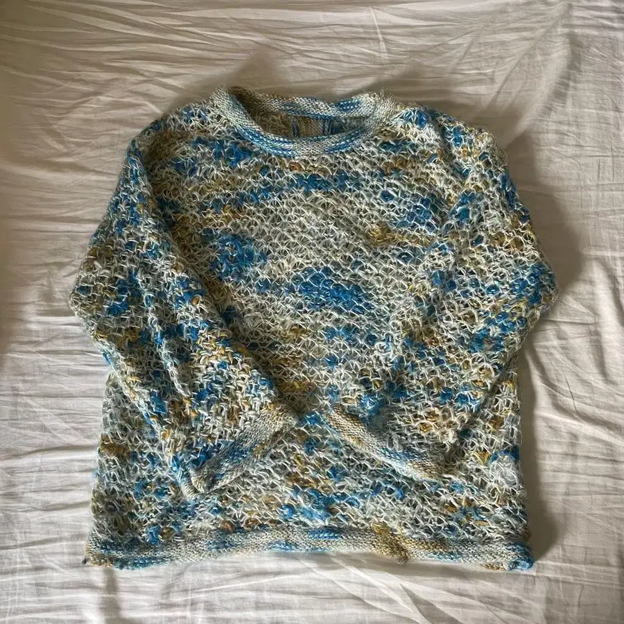 크러쉬한 듯한 랜덤한 메쉬 짜임이 특징인, 초 로우게이지 니트입니다.