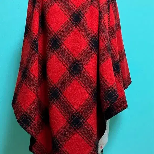 랄프 로렌 빨간색 블랙 체크 버팔로 울 판초 여성용 프리 사이즈