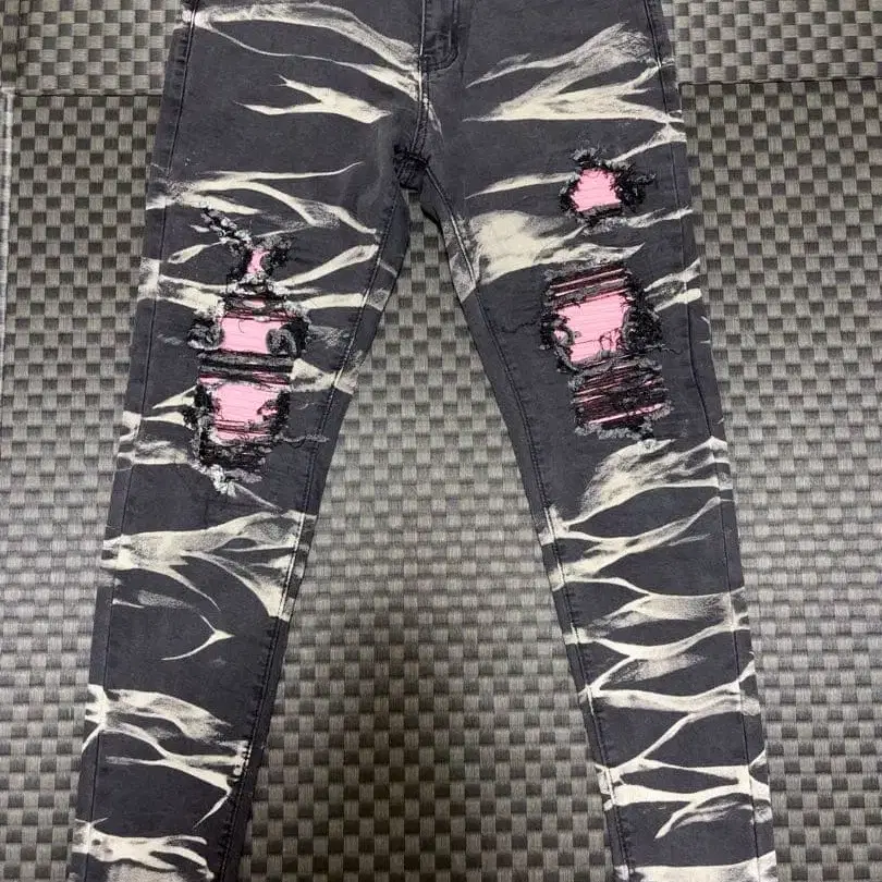 데미지 가공 스키니 데님 블랙 LOW TYPE DENIM L 사이즈
