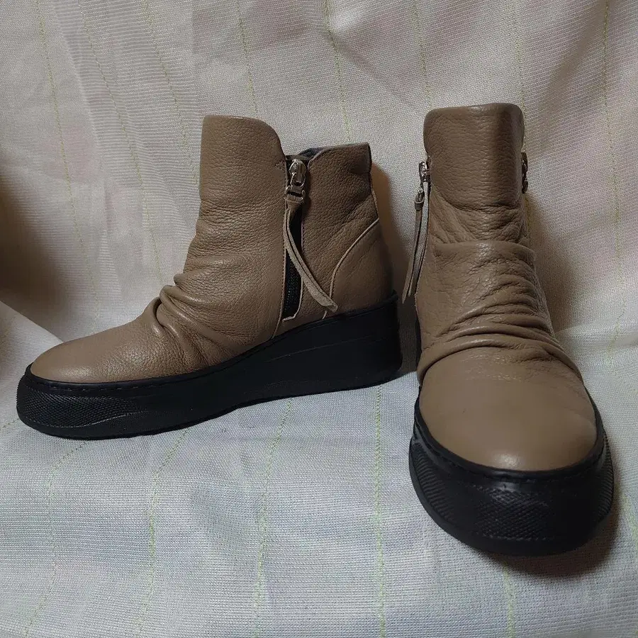 VITA NOVA의 더블 지퍼가 달린 베이지색 부티, 사이즈 23.5cm, 일본제입니다.