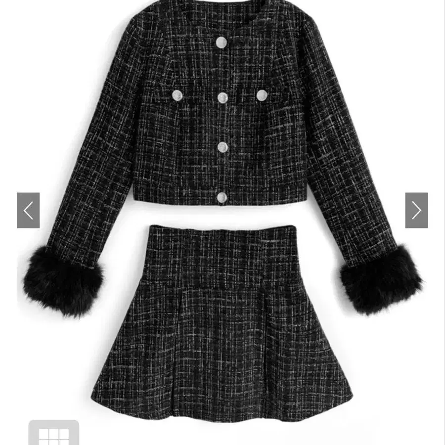 퍼 슬리브 자켓 x 미니 스커트 트위드 셋업[pm796] 블랙