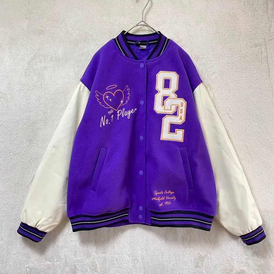 DIVIDED/바시티 자켓/S/와펜 자수 인조 가죽 스냅 버튼