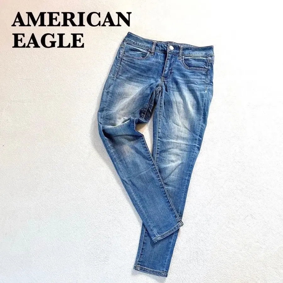 아메리칸 이글 스키니 데님 US4 라이트 블루 코튼 혼방