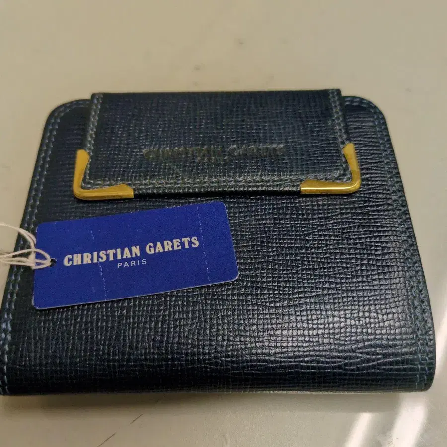 CHRISTIAN GARETS 네이비 이단 접이식 지갑