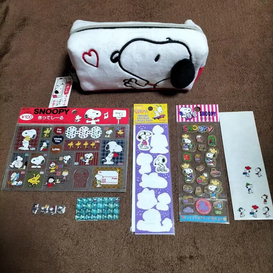 스누피 플리스 파우치와 씰 세트