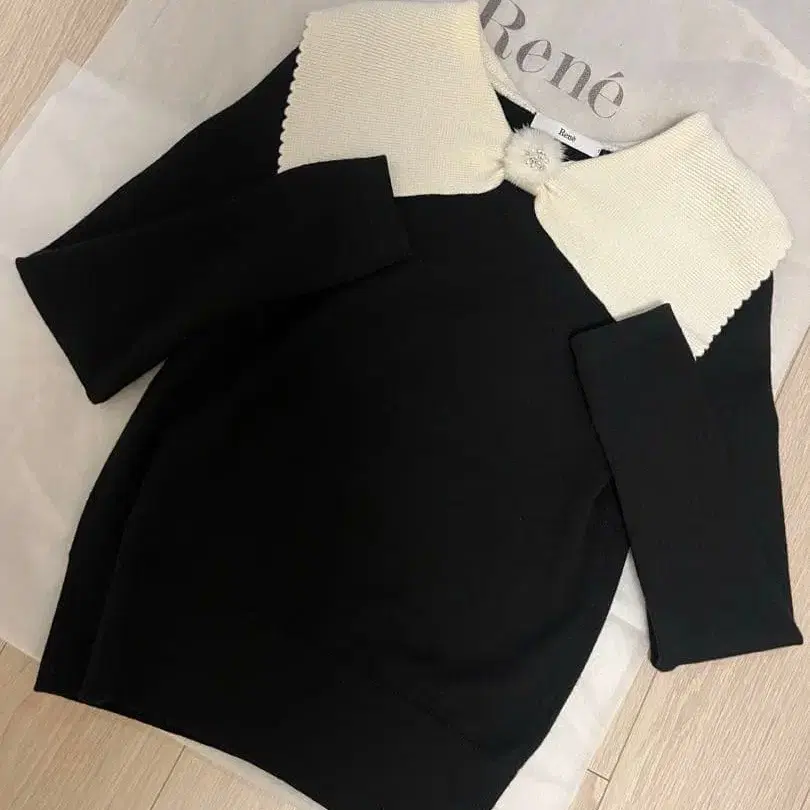 Rene 루네 34 바이컬러 니트 리본 브로치 포함