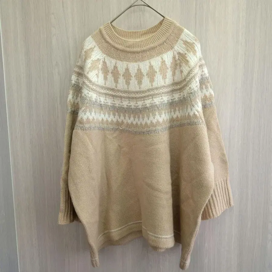 쉽스애니 상의 니트 스웨터 다이아 무늬 베이지 프리 사이즈