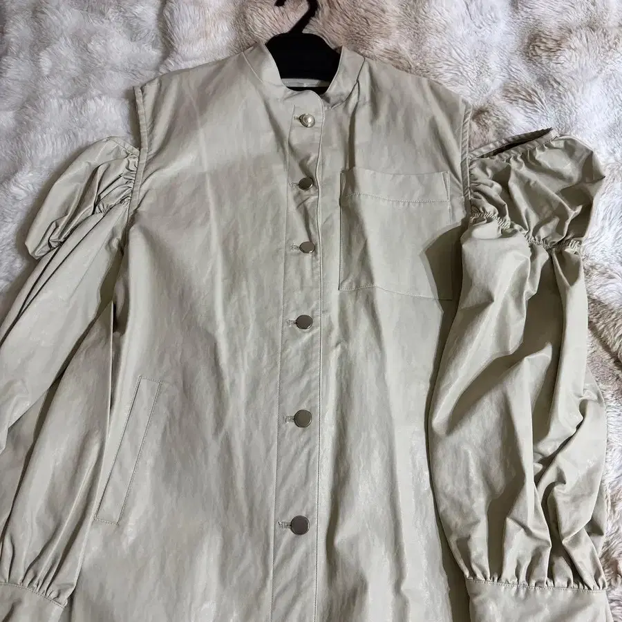 Honey mi honey 가죽 코트 베이지 퍼프 슬리브 롱