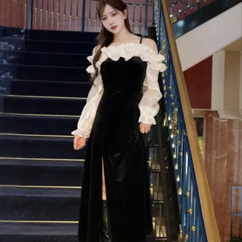 HOLIDAY&HOLIDAY 오프숄더 프릴 벨로아 원피스