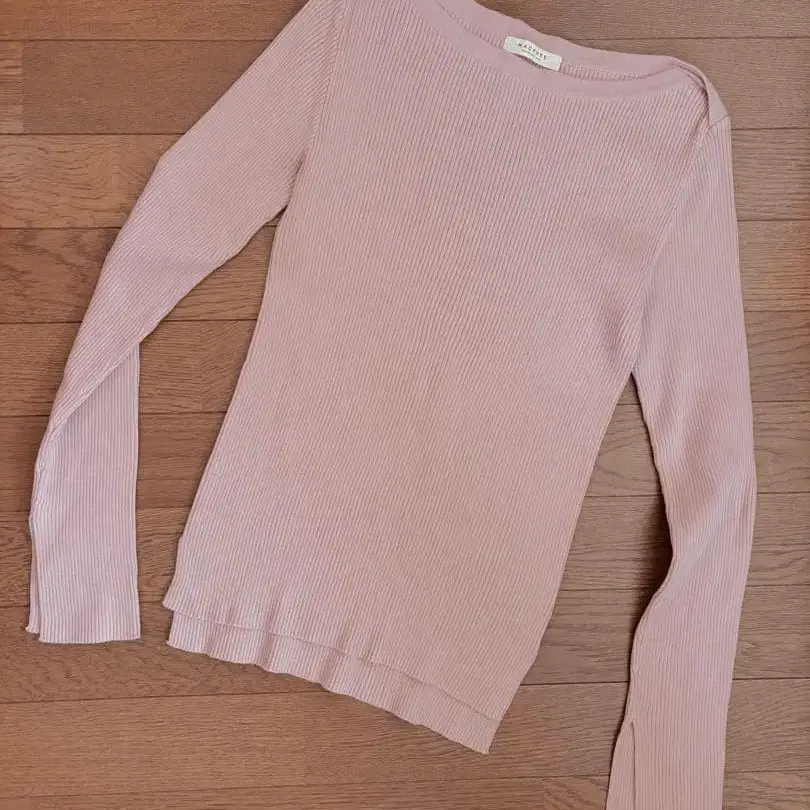 MACPHEE 리브 편직 오프숄더 긴팔 티셔츠