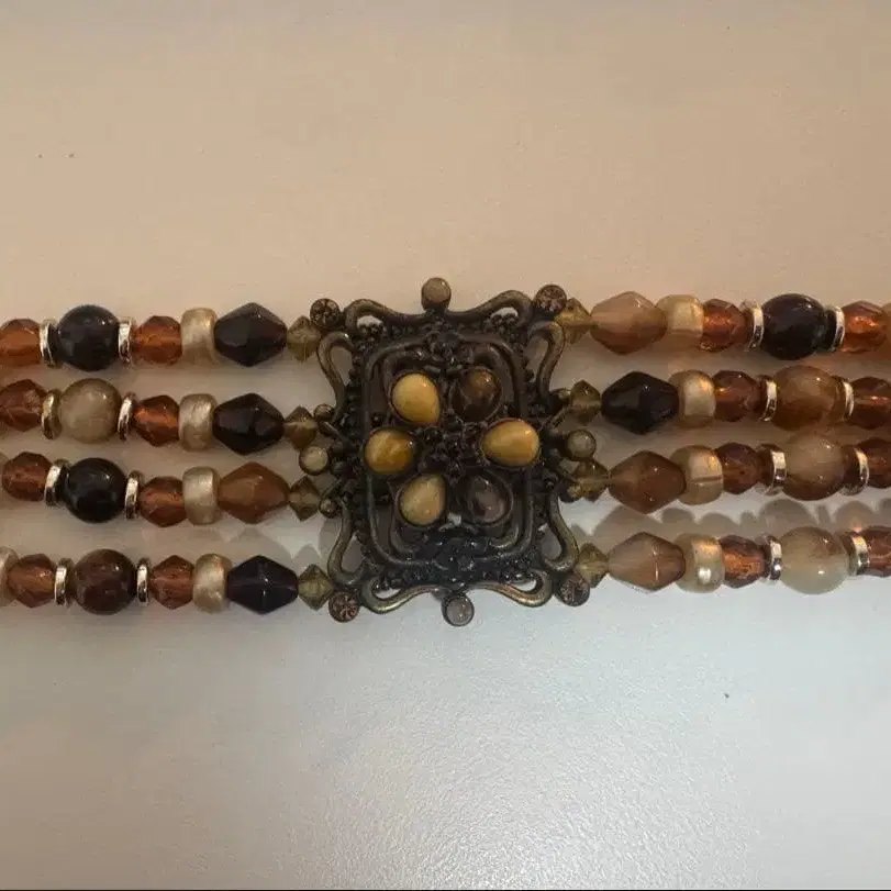 [ 착용 사진 있음 ] 브라운 계열 비즈 다층 초커