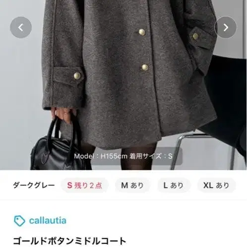 칼라우티아 골드 버튼 미들 코트 다크 그레이 L