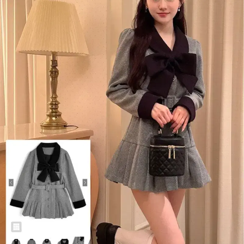 GRL 리본&벨트 포함 배색 플리츠 미니 코트