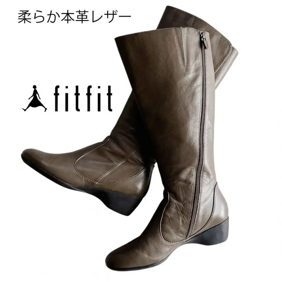 새상품급 핏핏 천연 가죽 일본제 웨지솔 롱 부츠 브라운 계열 23.5