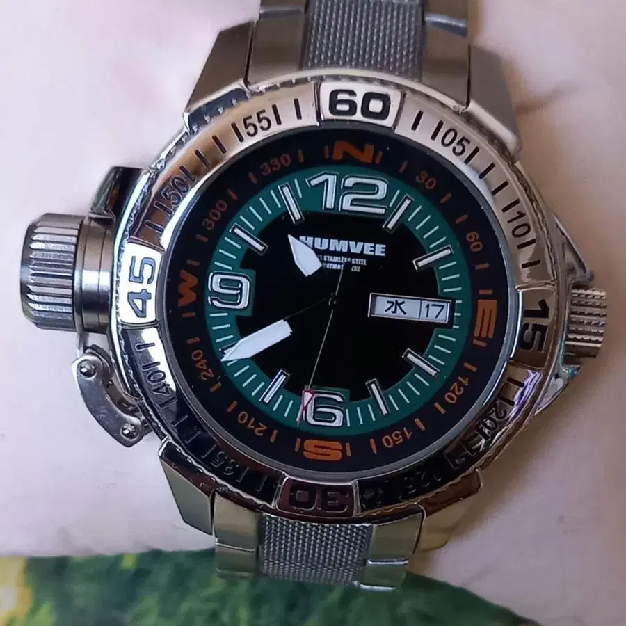 HUMVEE 다이버 워치 100m 방수 블랙/그린 손목시계