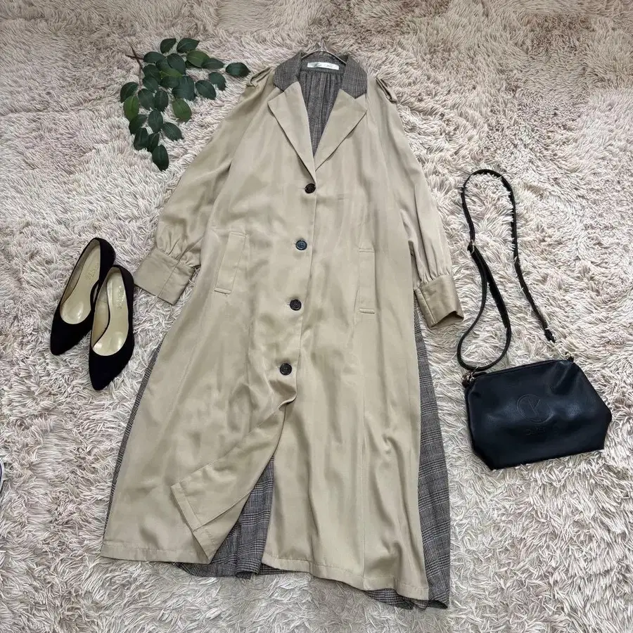 6870 고베 레터스 롱 코트/트렌치풍/베이지 계열/절개/체크/얇은 소재