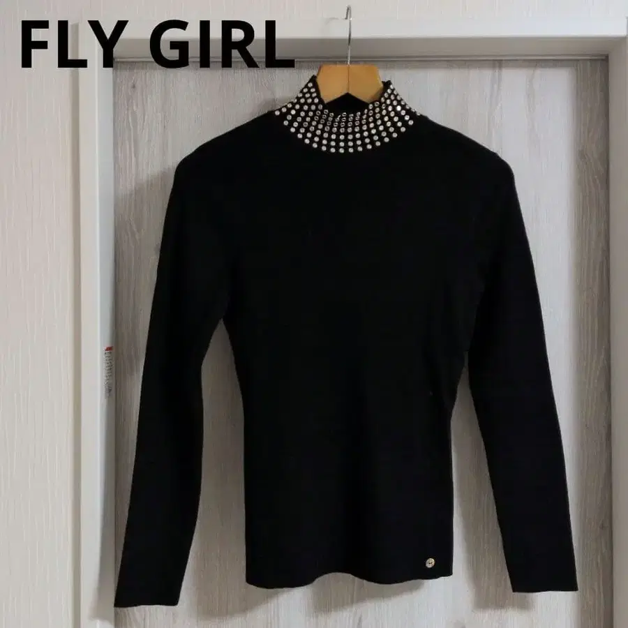 FLY GIRL 스터드 하이넥 블랙 니트 스웨터