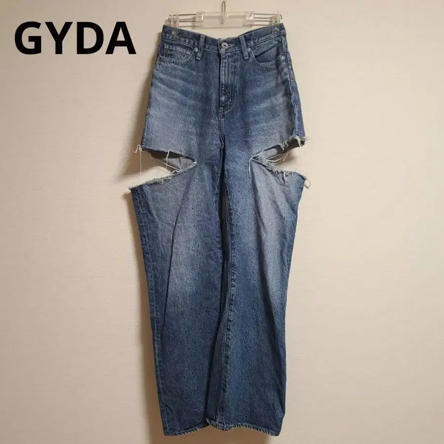 GYDA 제이다 스키니 데님 S 사이즈 블루 무릎 데미지 가공