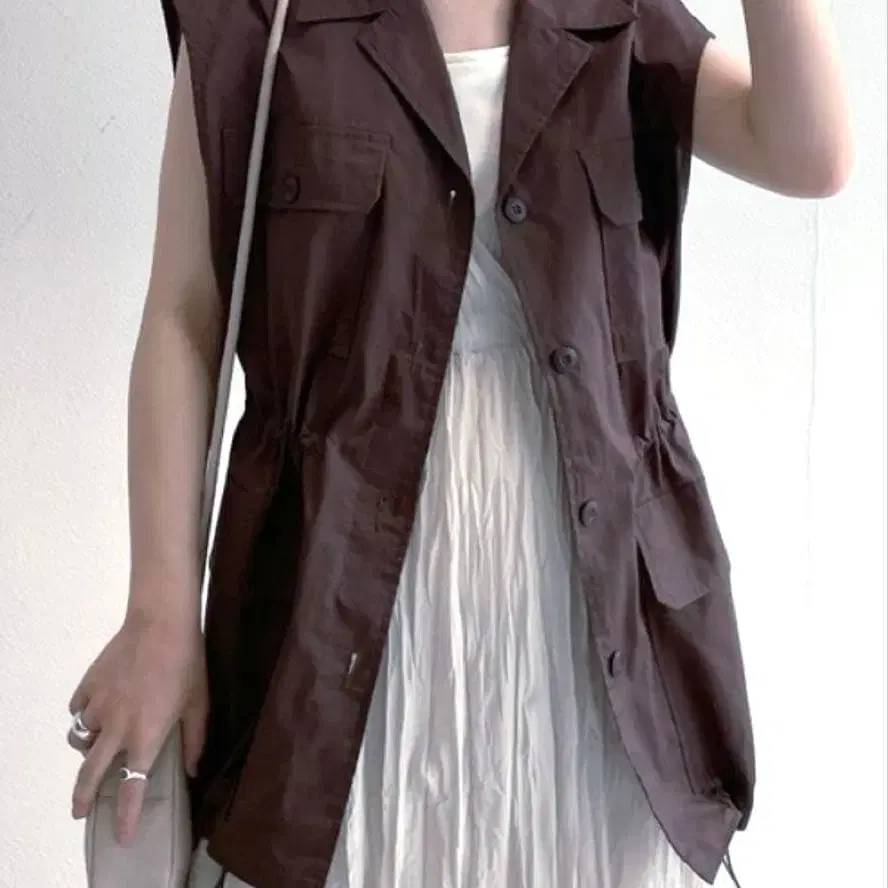 [ 미사용 ] Wcloset 오픈 카라 밀리터리 베스트 자켓 그레이