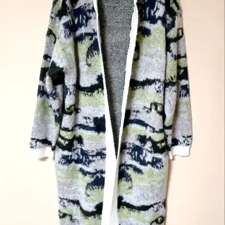 antiqua 수채화 아트 패턴 롱 니트 가디건 모헤어 혼방