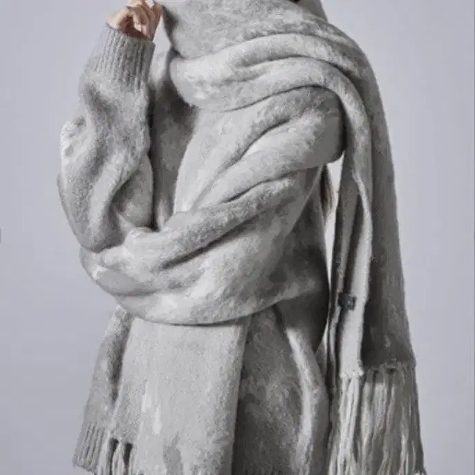 CLEL 모헤어 블렌드 샤기 디자인 대형 머플러 그레이 계열