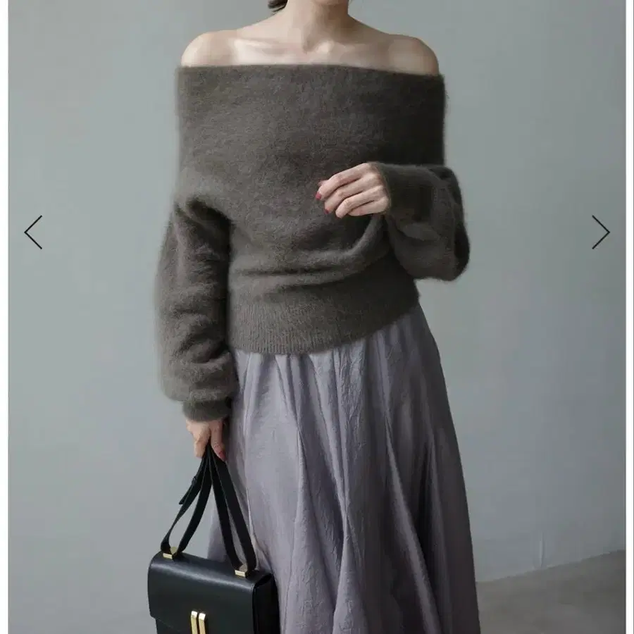 니트 소재이기 때문에 오프숄더의 정도를 조절하여 연출할 수 있는 것도 기쁜 포인트입니다.