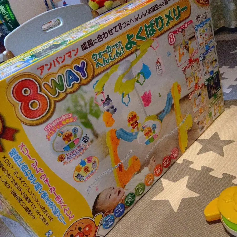 자동 번역되었어요. 원문보기호빵맨 캐릭터를 즐길 수 있는 8WAY 다기능 멜리. 음악 기능이 있으며, 매달 수 있는 부품이 부속되어 있습니다.