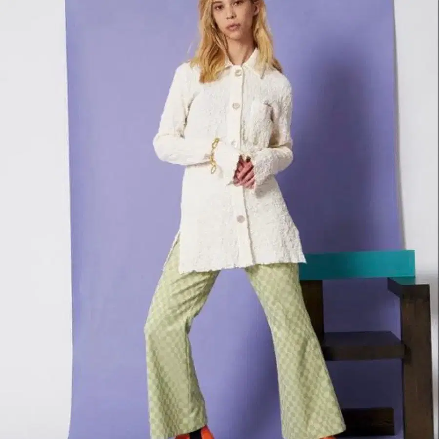 MAISON SPECIAL 체크 무늬 플레어 팬츠 그린