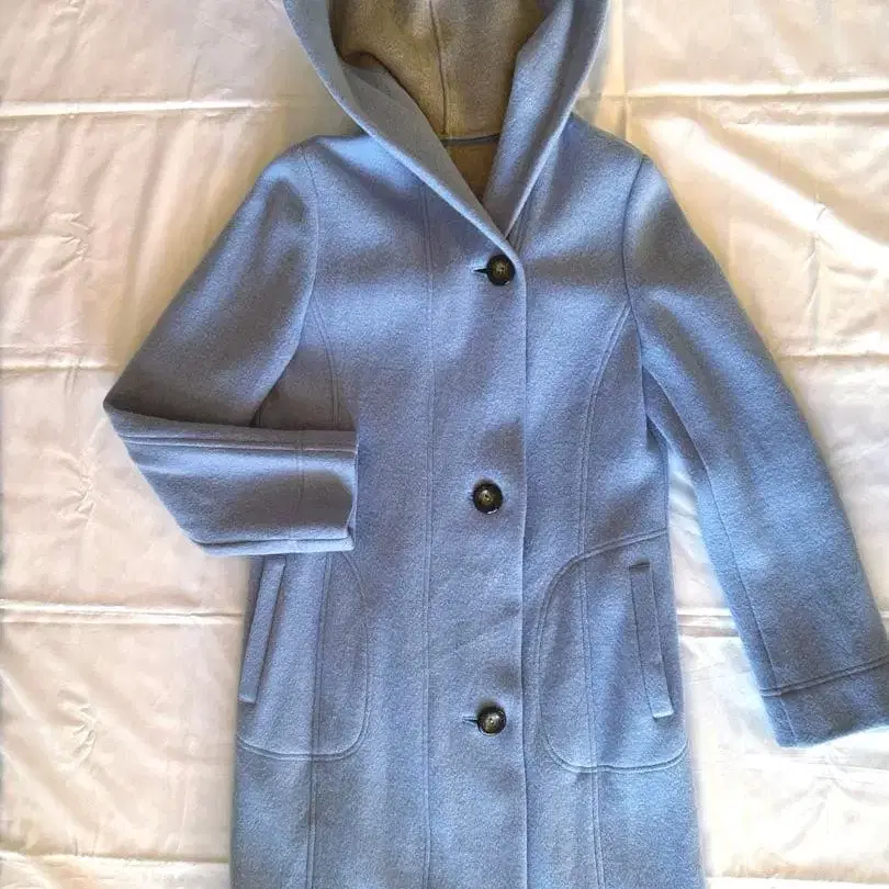 MONGRE 후드 부착 롱 코트 블루 S 사이즈