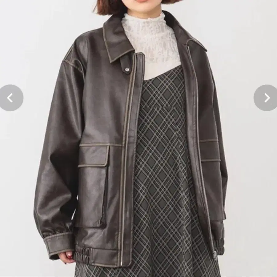 Ray BEAMS 인조 가죽 플라이트 자켓 브라운