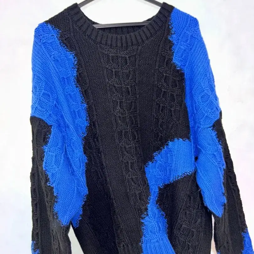 자동 번역되었어요. 원문보기블랙과 블루 색상의 케이블 짜임 디자인 오버 사이즈 니트.