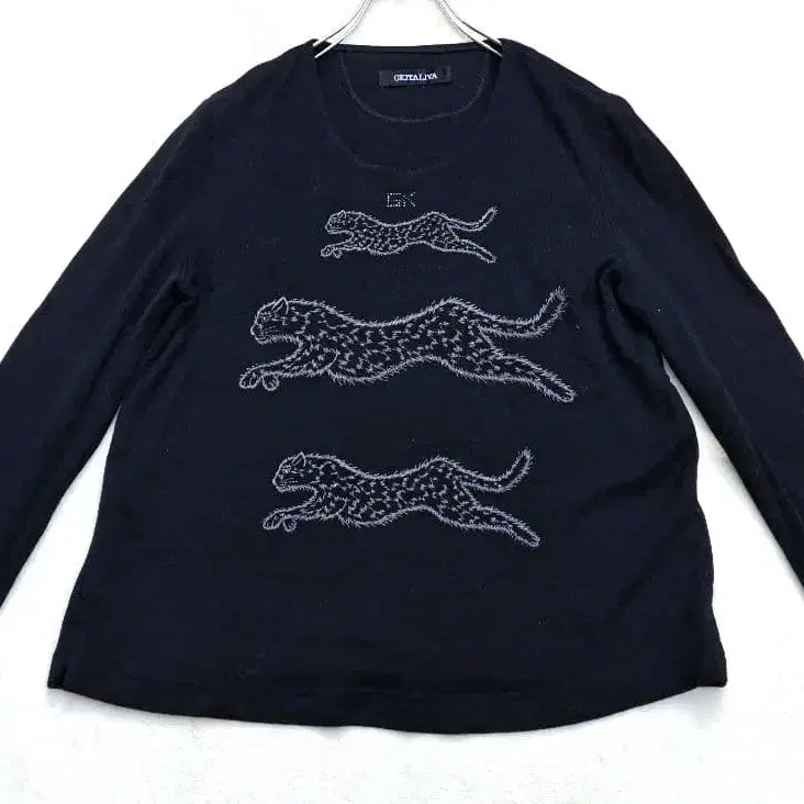 이타리야 울100% 스웨터 블랙 레오파드 무늬 빅 사이즈 13 여성용