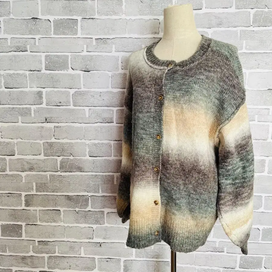 그라데이션 니트 가디건 루즈핏 오버 사이즈 두꺼운 원단 B700