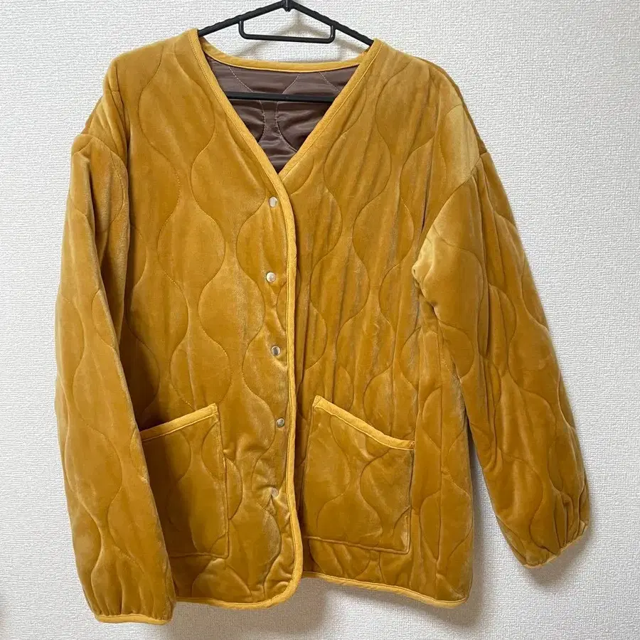 Hunch 퀼팅 자켓 헌치 벨로아 구제 의류풍 머스타드