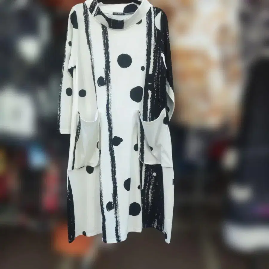 도트 스트라이프 디자인 긴팔 원피스