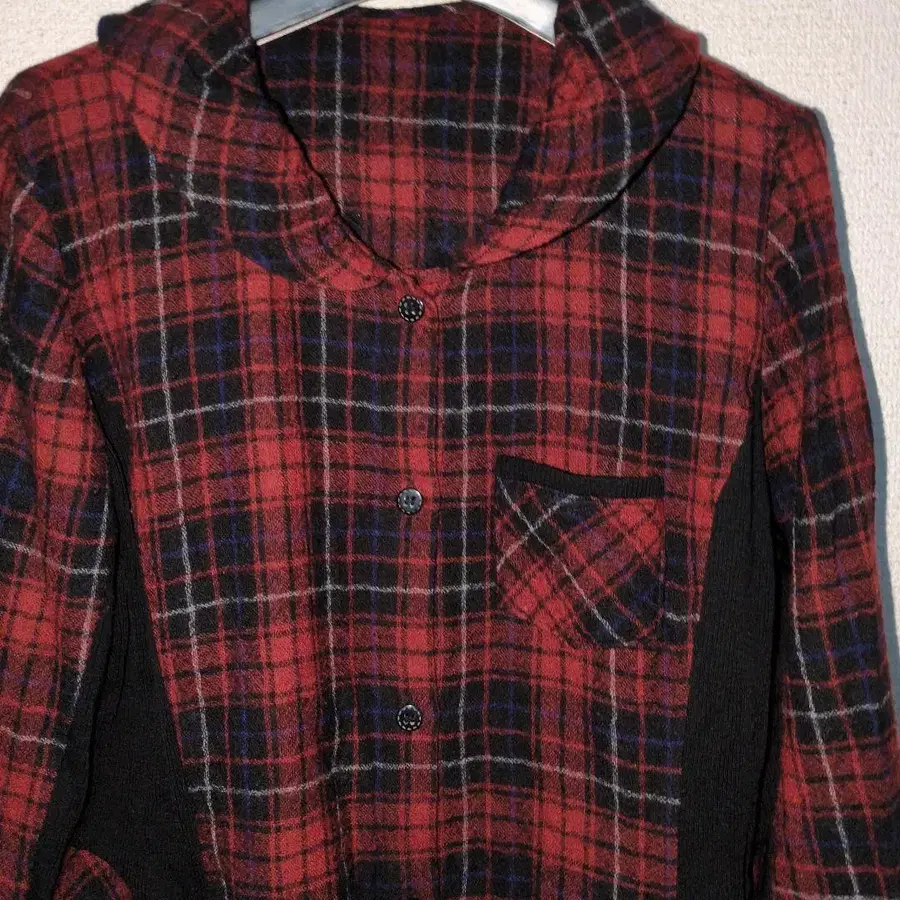 세라비노보노보, 빨검 체크 셔츠, 튜닉 기장, 블라우스 셔츠