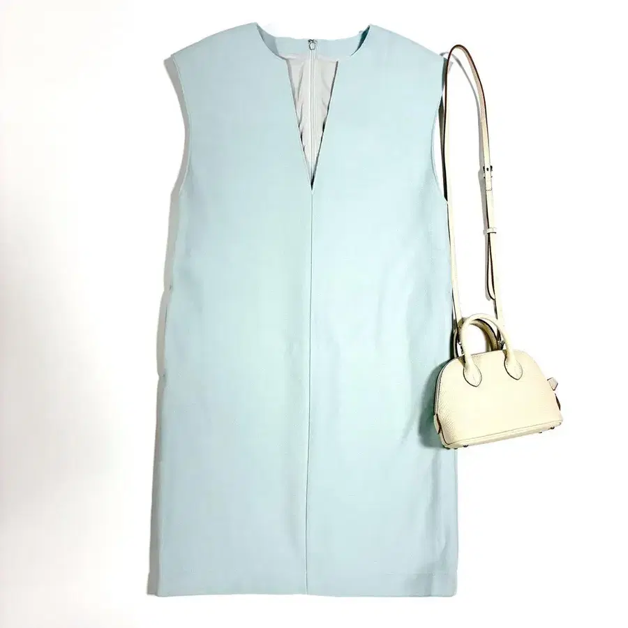 [ 새상품급 ] LOUNIE 더블 저지 오버롤 스커트 V넥 라이트 블루
