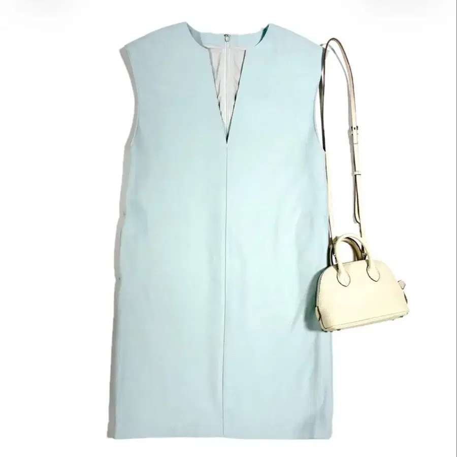 [ 새상품급 ] LOUNIE 더블 저지 오버롤 스커트 V넥 라이트 블루