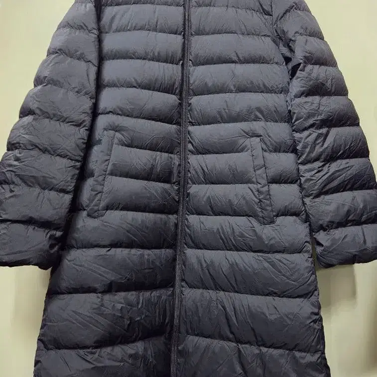 유니클로 다크 그레이 롱 후드 부착 다운 자켓