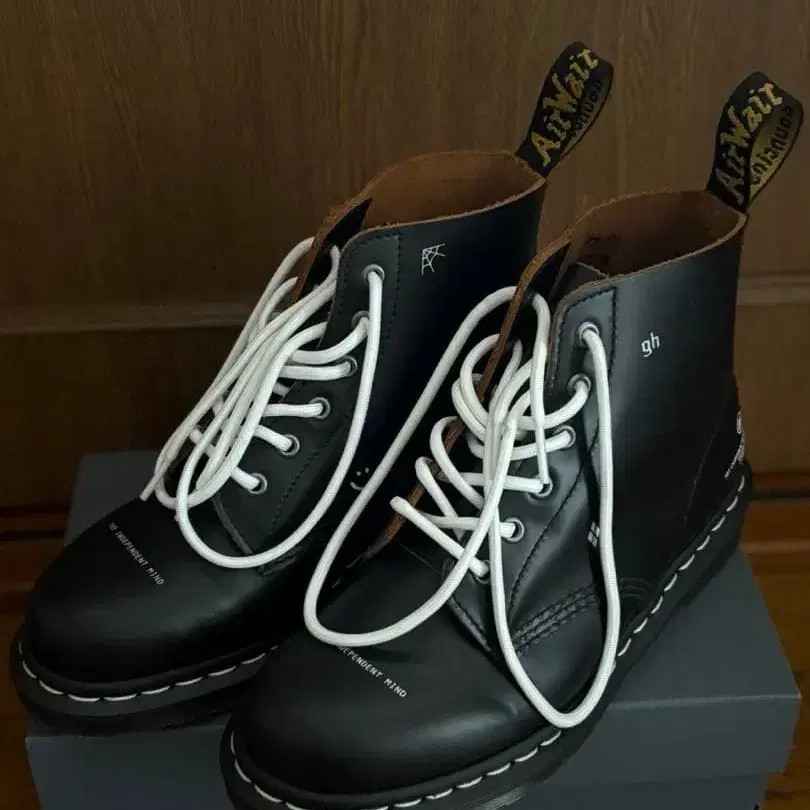 수많은 상품 중 방문해 주셔서 감사합니다. 해당 상품은 닥터마틴과 굿후드의 콜라보 부츠입니다. 이 아이템은 [101 UB 굿후드 6홀 부츠]라고 불립니다. 이 상품은 남녀 공용입니다. 2회 착용 컨디션 최상