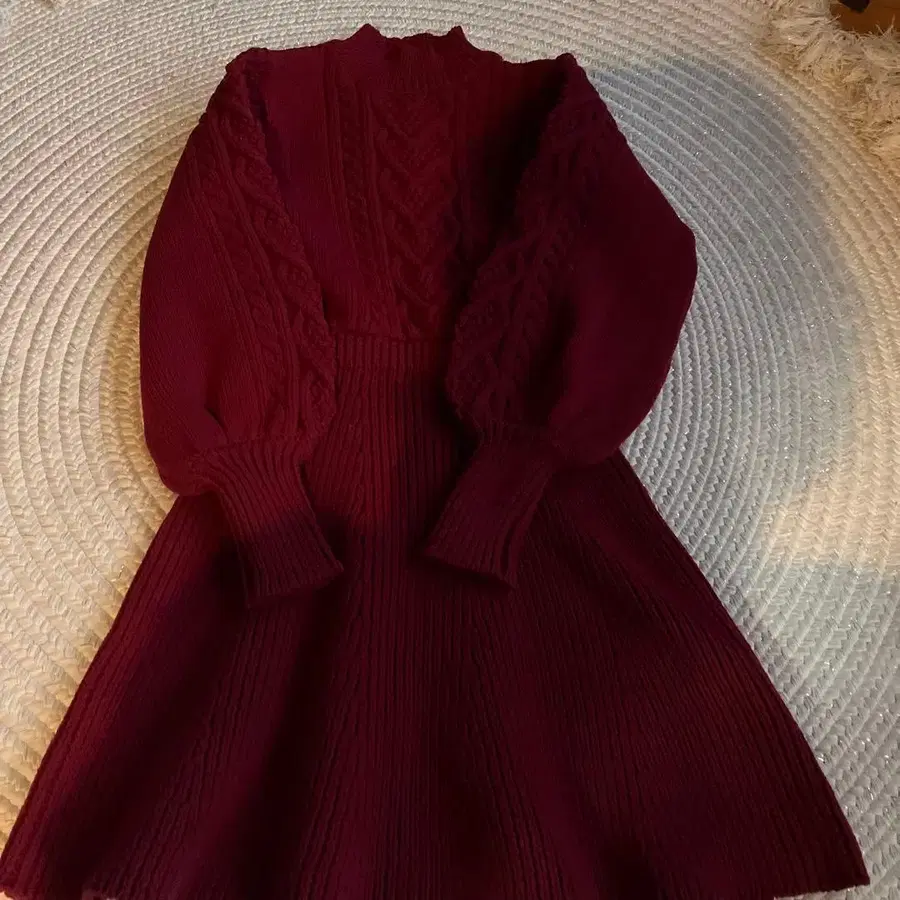 버건디 니트 원피스 긴팔 플레어 merry jenny
