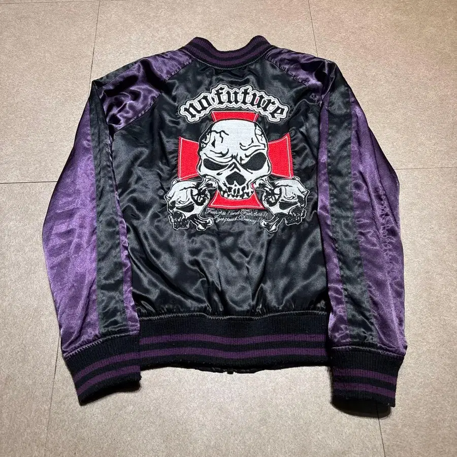 No future 스카잔 자켓 블루종 스컬 자수 해골 블랙 보라색