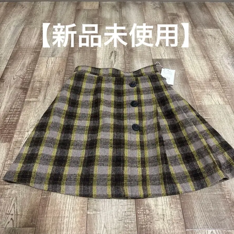 [ 미사용 새상품 ] 모카색 체크 무늬 미니 스커트 M