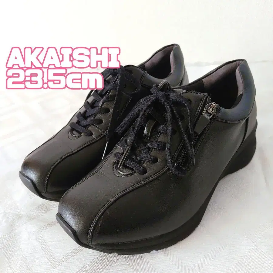 [새상품급] AKAISHI 아카이시 스니커즈 가죽 블랙 사이드 지퍼