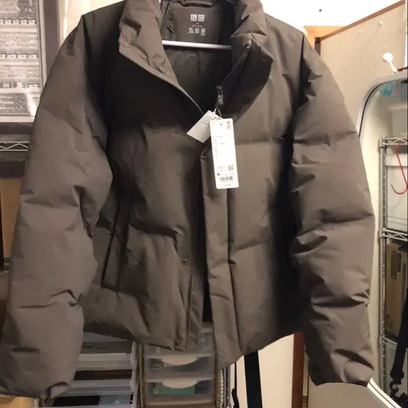 유니클로 심리스 다운 자켓 M 사이즈 다크 브라운